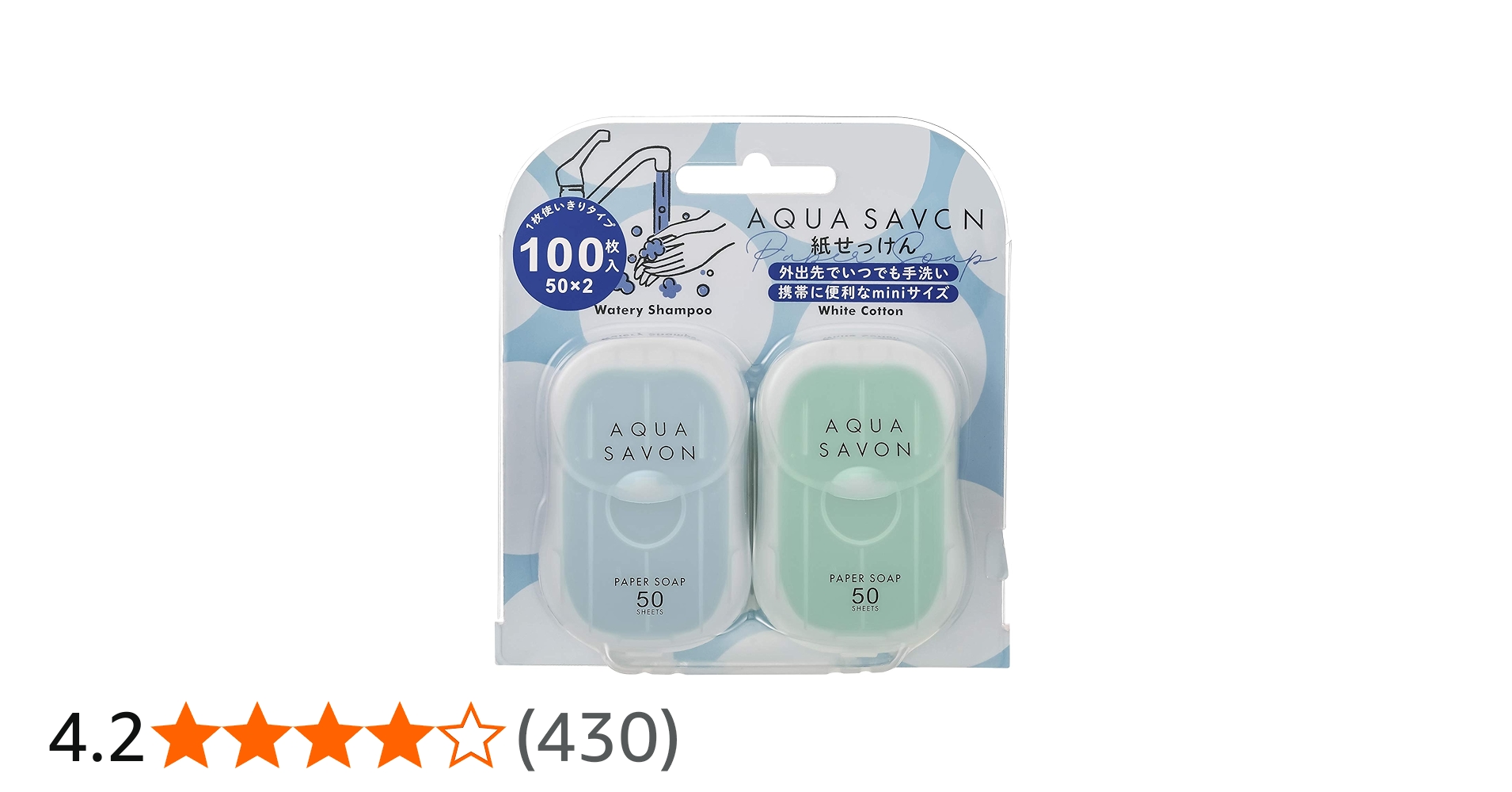 紙石鹸 AQUA SAVON(アクアシャボン) アクアシャボン 紙せっけん セットB(ウォータリーシャンプーの香り、大好きなせっけんの香り)50枚×2 石鹸