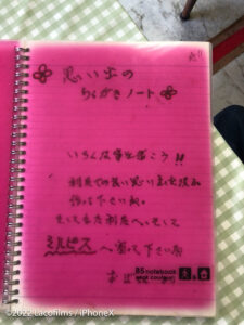 思い出のノートには、世界中の旅人からのメッセージが書いてありました。全部読む時間がないけれど、もし再び訪れた時に、自分か書いたノートを探すのは楽しいかもしれません。