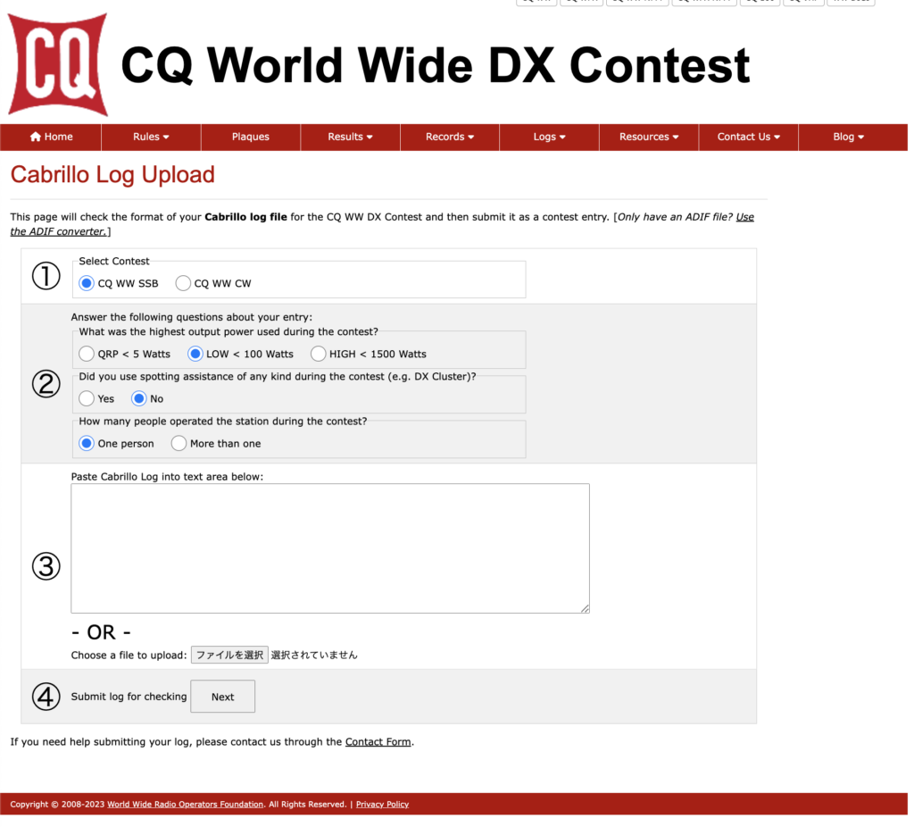 2. Cabrillo Log Upload / カブリロ形式のログをアップロード