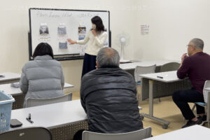受講生が撮影した作品を鑑賞します。作品を撮ってきた人の気持ちや、作品から読み取れるストーリーを考える講座内容です。時間が余ったら、カメラの基本を学びます。