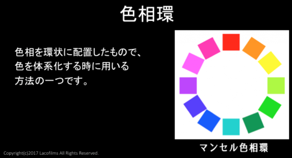 ここでは、マンセル色相環を12色で表現しています。